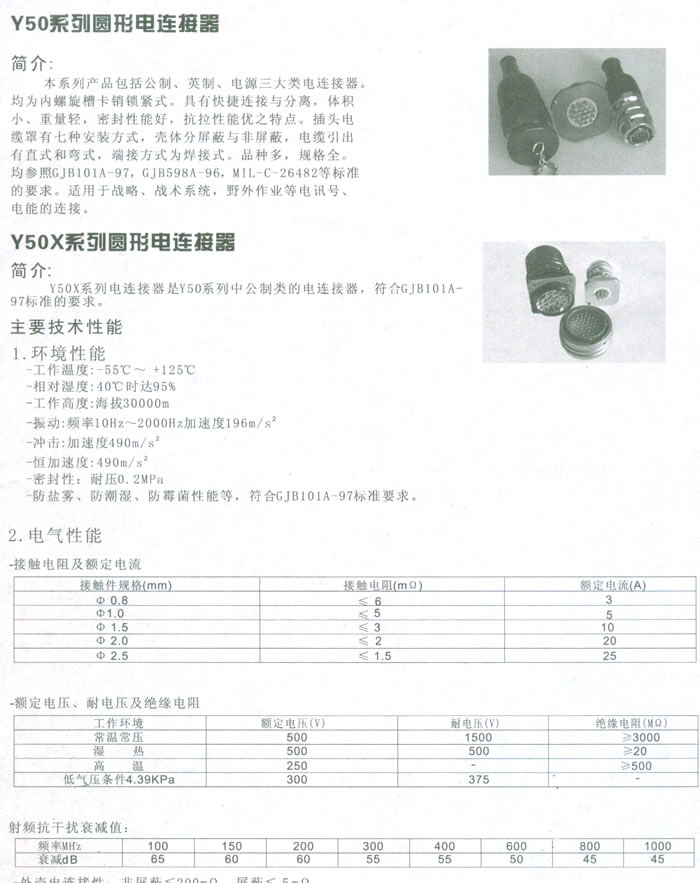 Y50X系列圆形电连接器