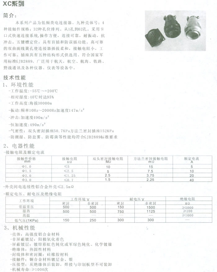 XC及其派生系列圆形电连接器