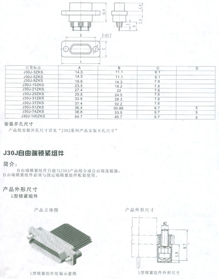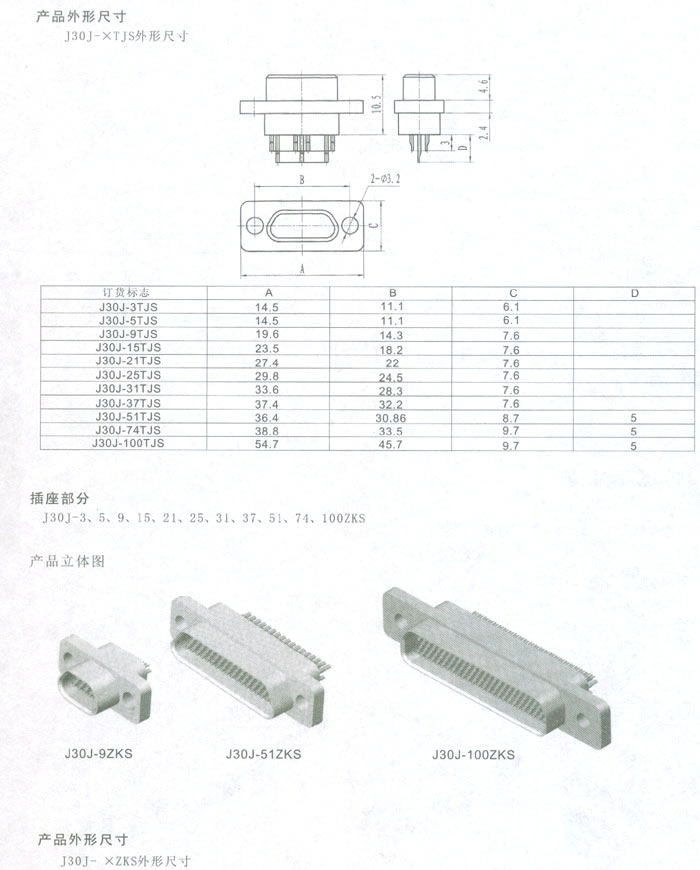 J30J系列微型矩形电连接器