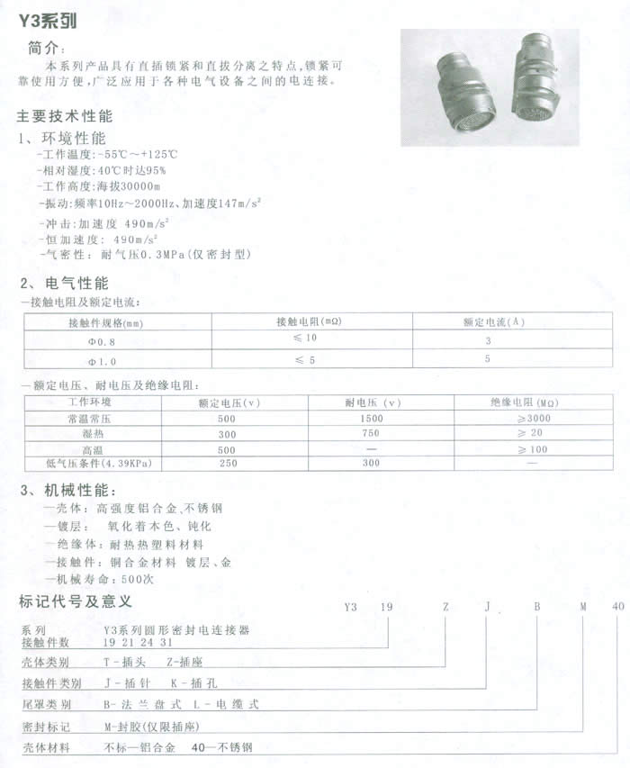 Y3及其派生系列圆形电连接器